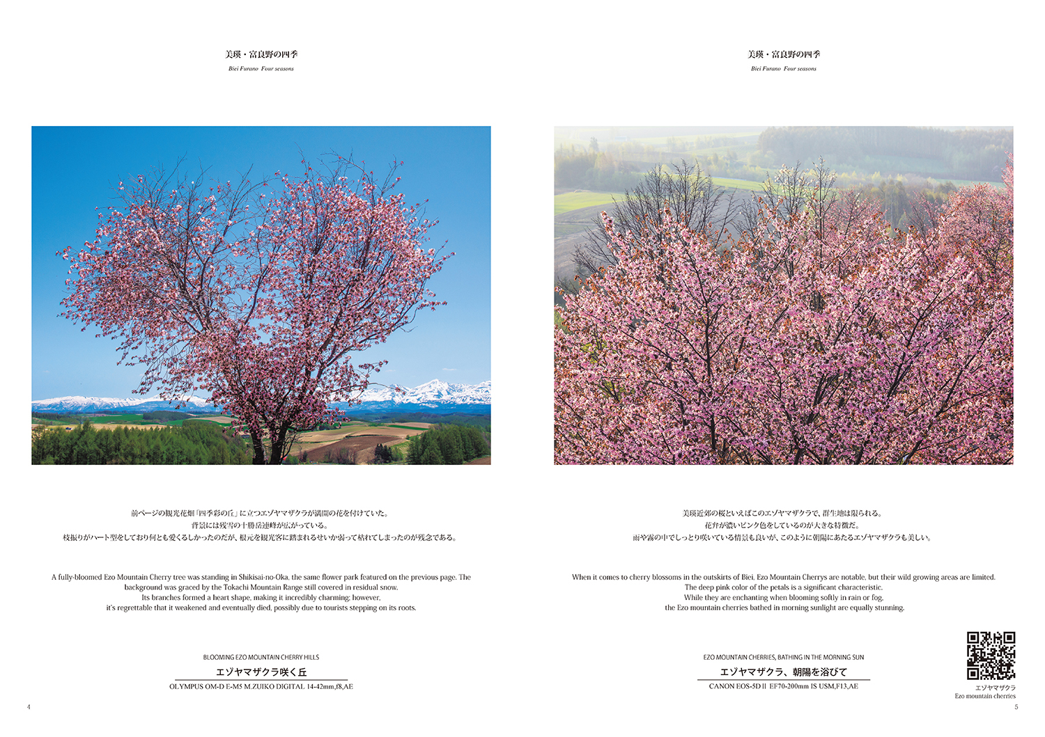 この写真集は今まで制作したカレンダーの中から、特に人気の高かった作品をセレクトし、春から夏、秋、そして冬と、季節ごとに編集したもので、題名もわかりやすく「美瑛・富良野の四季」としております。