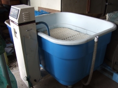 この水槽に水を溜め左側の装置で温度管理を行います。