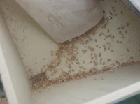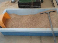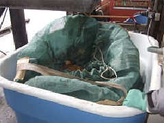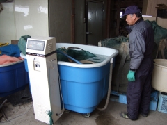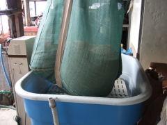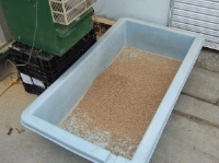赤麦に酸素を与えるために一旦水槽から取出し水気を抜きます。