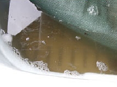 水中に発芽抑制物質などが溶け出し茶褐色になっています。