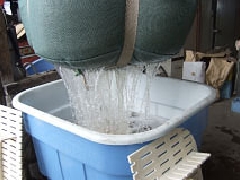 この網に赤麦を入れ、そのまま水中に漬けます。