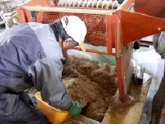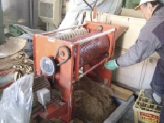 「乾燥」の工程は終了、乾燥機にかけます。写真は「ほぐし機」です。