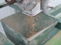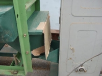 二段目の脱根機(中は一番目のものと同じように棘の付いた棒が回転しています)と、