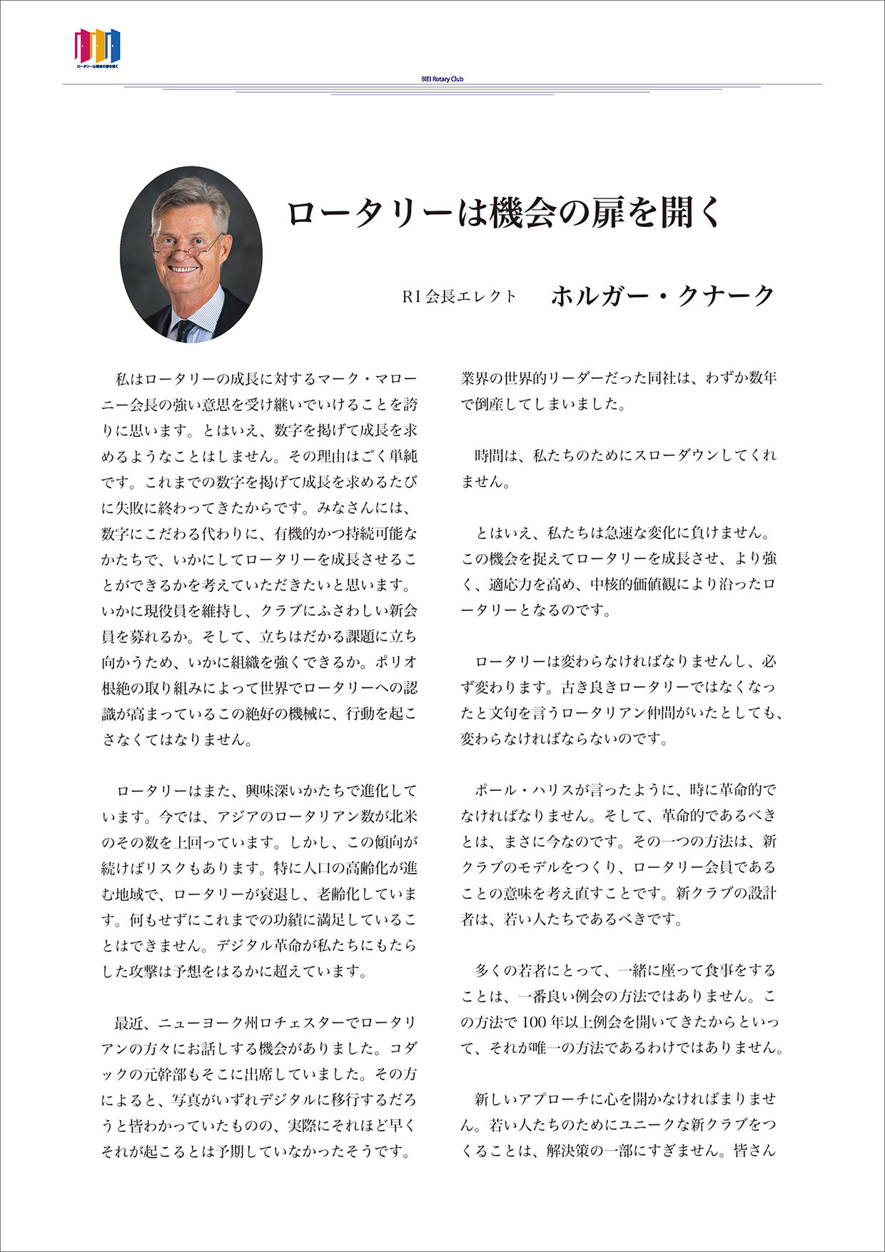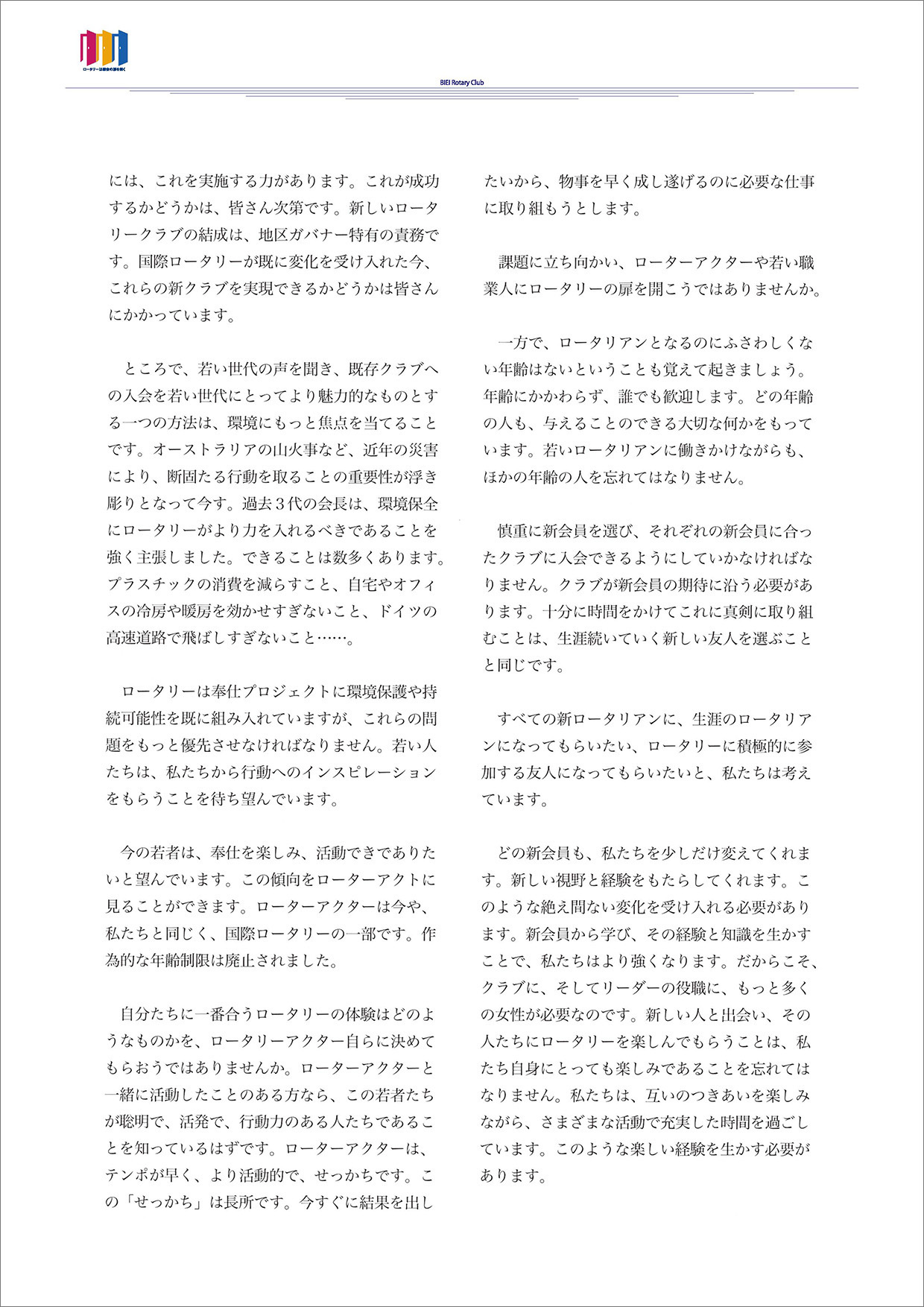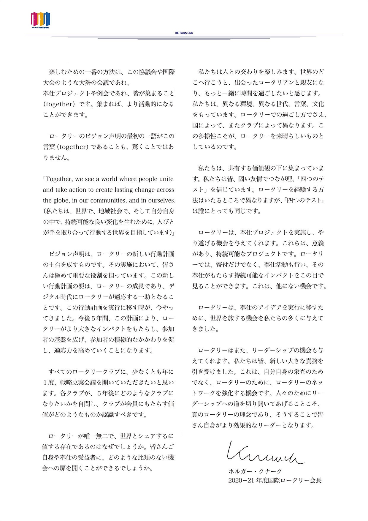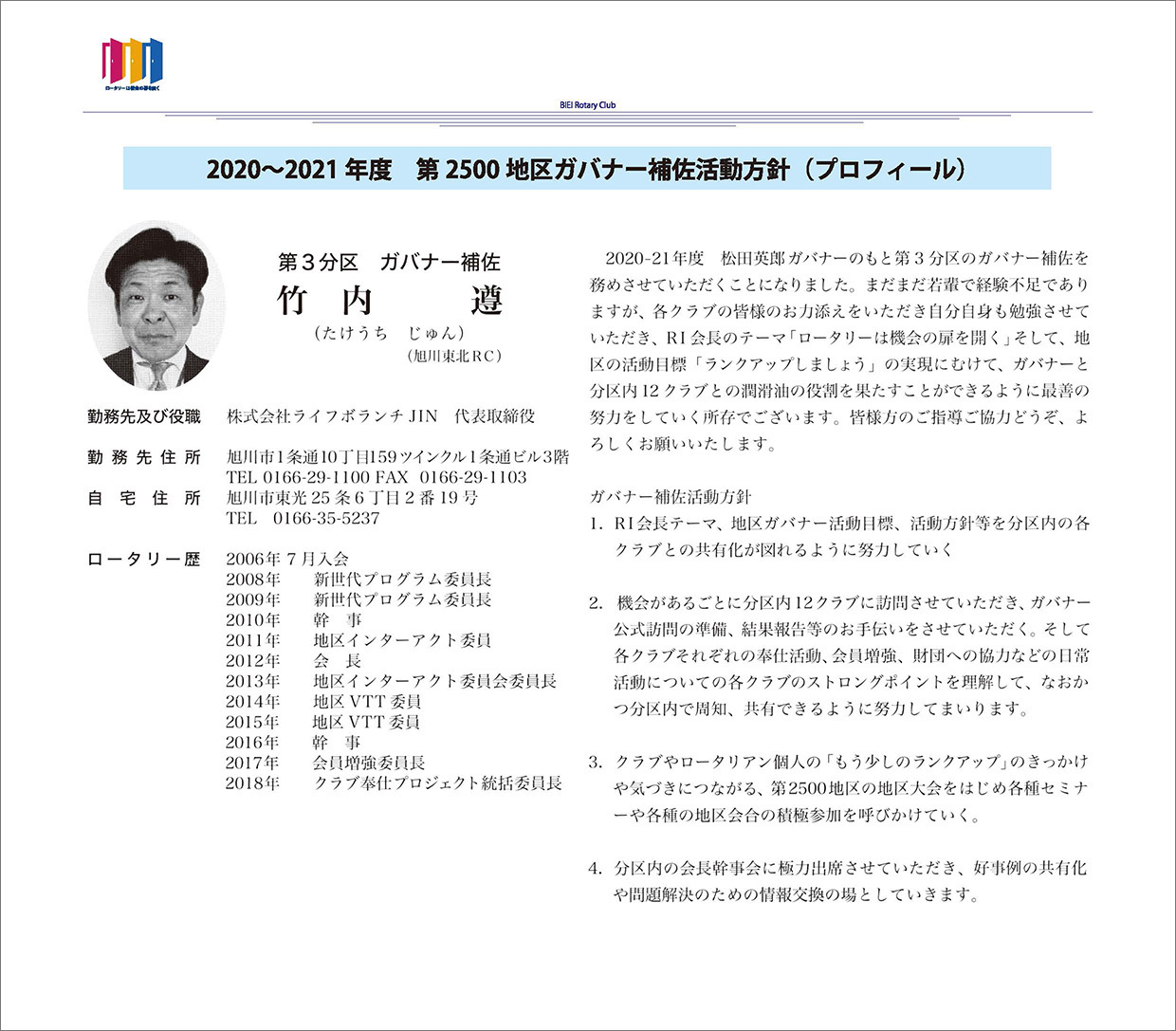 過去の会長方針 ★会長方針 2025-26 ★会長方針 2024-25 ★会長方針 2023-24 ★会長方針 2022-23 ★会長方針 2021-22 ★会長方針 2020-21 ★会長方針 2019-20 ★会長方針 2018-19 ★会長方針 2017-18 ★会長方針 2016-17 ★会長方針 2015-16 美瑛ロータリークラブ 2020-21年度 会 長 古 川 博 士 会長方針 ページトップへ