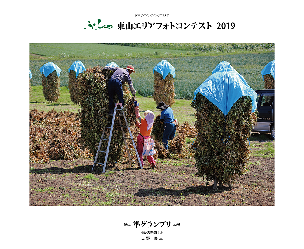 準グランプリの天野良三さんの作品「愛の手渡し」は、東山エリアの風物詩となっている棒積み作業をしている風景を捉えたものです。青エンドウに限らず作物を育てるのは大変な作業で、愛情なくしてはできないのではないでしょうか。シャッターチャンスも的確で、まさに手渡した瞬間を切り取って作品化しています。