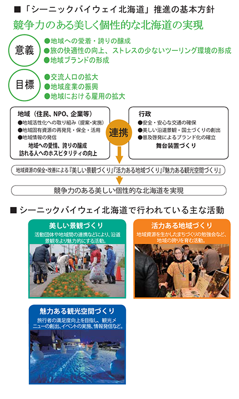 地域と行政が連携し、景観や自然環境に配慮し、地域の魅力を道でつなぎながら個性的な地域、美しい環境づくりを目指す施策です。